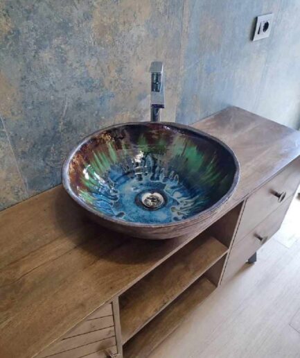 Każda sztuka powstaje ręcznie na indywidualne zamówienie; naturalne różnice w kształcie i kolorze są częścią jej unikalnego charakteru.