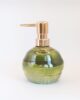 Ten Ceramiczny dozownik na mydło w płynie to połączenie funkcjonalności, rzemiosła i estetyki inspirowanej naturą. Wykonany ręcznie na kole garncarskim i pokryty efektowną zielono-miedzianą glazurą o delikatnym połysku, wniesie do Twojej łazienki wyjątkowy klimat i przytulną elegancję.