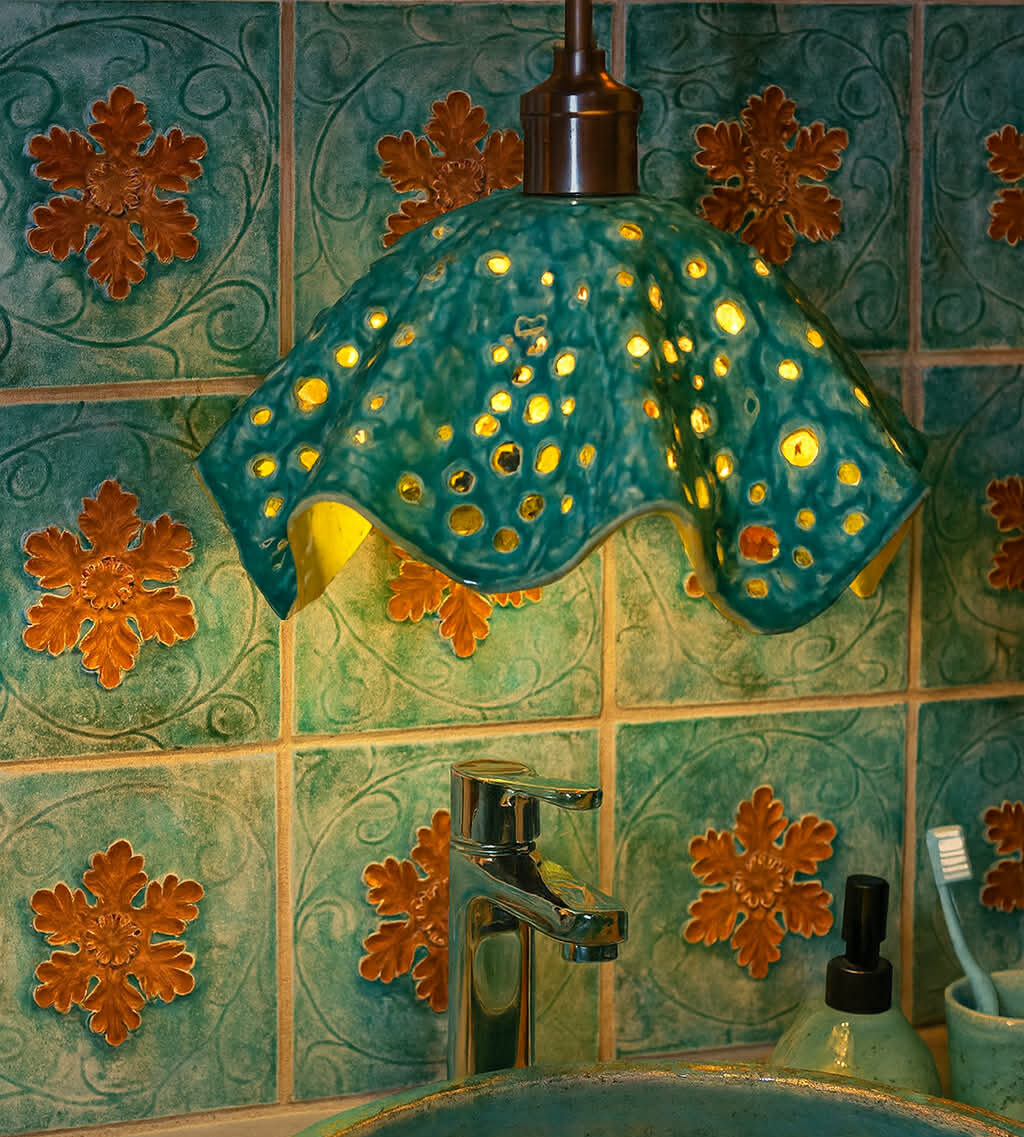 • Styl: boho, artystyczny, naturalny, eklektyczny Każda sztuka jest niepowtarzalna – widoczne ślady ręcznego wykonania i subtelne różnice w szkliwie podkreślają autentyczność produktu. Lampa „Galaktyka” to nie tylko źródło światła, ale także dekoracyjny akcent, który przyciąga wzrok i tworzy przytulną atmosferę. Dodaj do koszyka i rozświetl swoje wnętrze z charakterem!