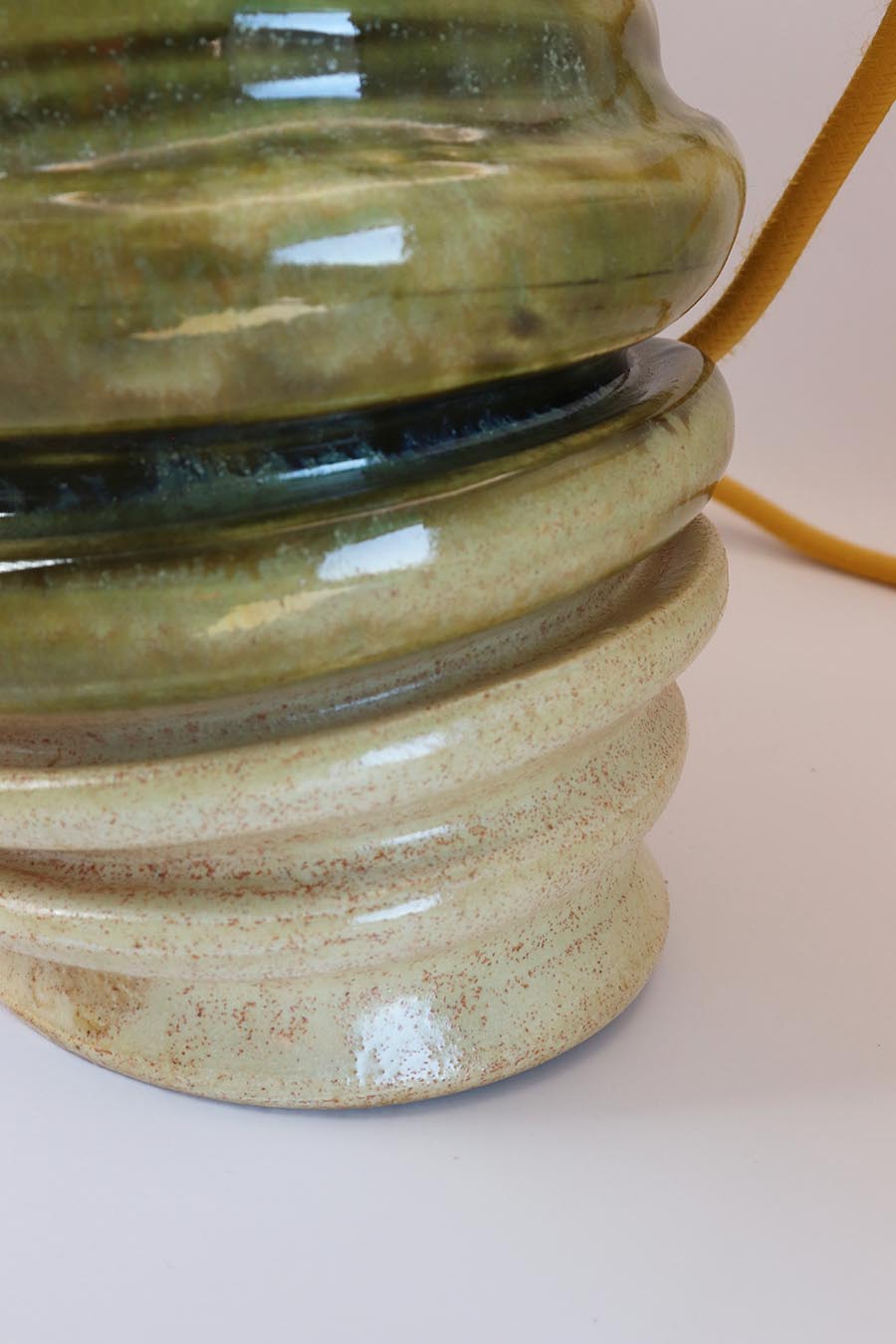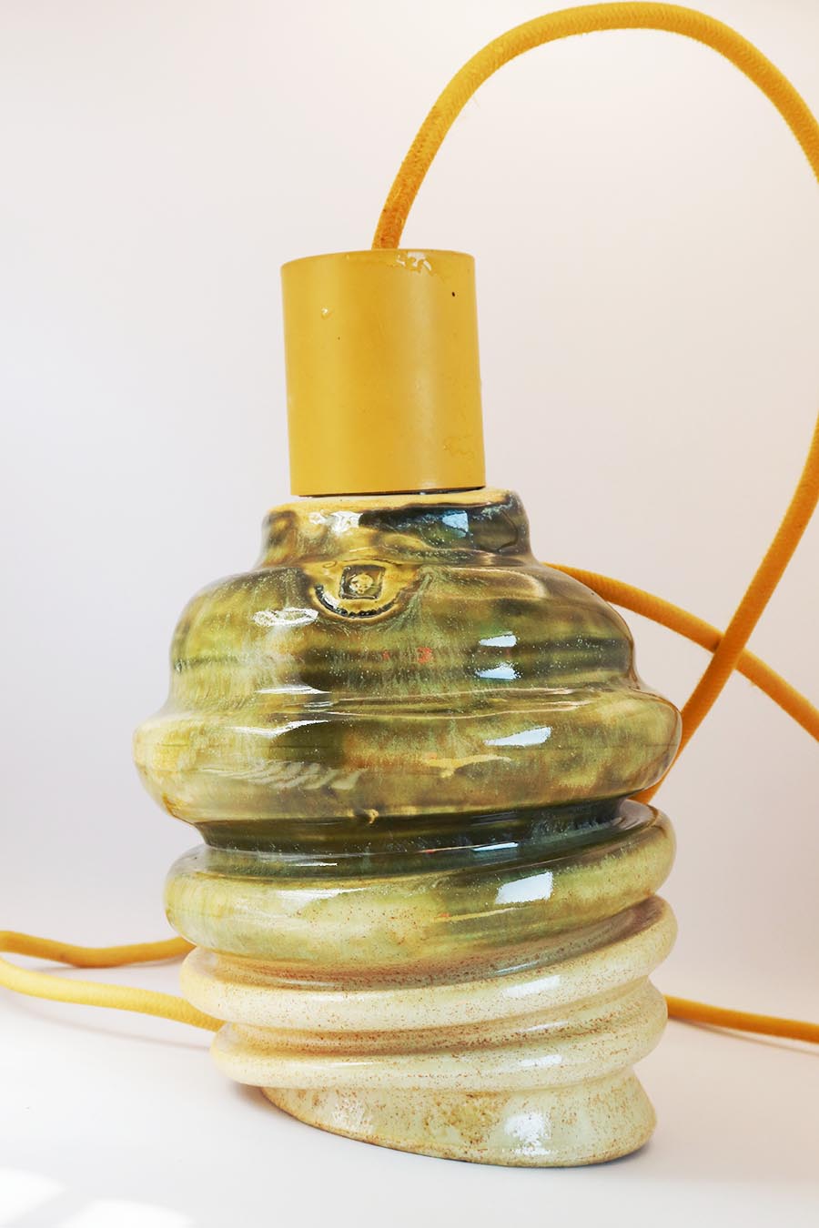 Ceramiczna lampa jest wykonana ręcznie, poddana szkliwieniu i podwójnemu wypałowi. Dzięki czemu jest wyjątkowo trwała. Z zewnątrz lampa jest w kolorze turkusu i bieli, wewnątrz jasno beżowa.
