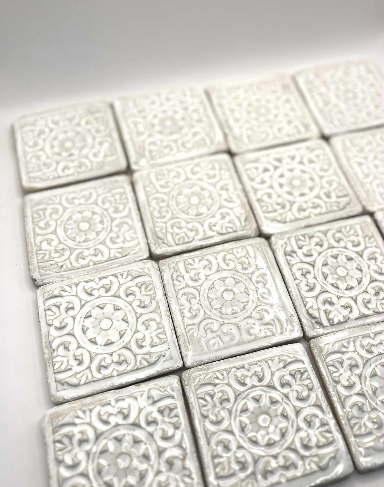 „Kwiatowa Koronka” to luksusowe, ręcznie robione płytki ceramiczne, których wzór nawiązuje do subtelnych, koronkowych ornamentów inspirowanych kwiatowymi motywami. Delikatnie wypukła, zdobiona powierzchnia płytek łączy naturalne piękno roślinnych wzorów z tradycyjnym rzemiosłem, tworząc wyjątkowy efekt dekoracyjny.