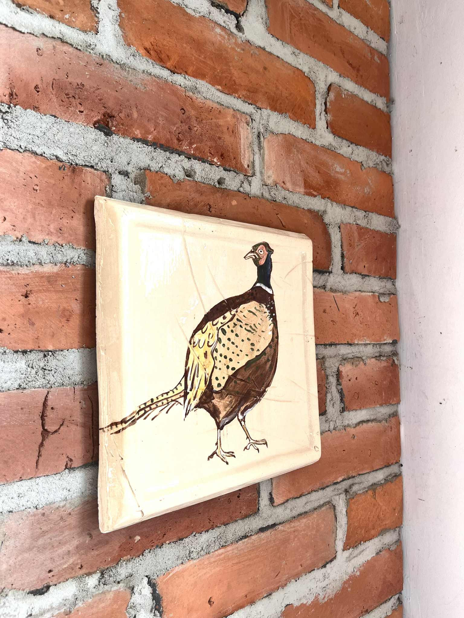 Unikalny kafel ceramiczny z ręcznie malowanym bażantem to połączenie sztuki i rzemiosła. Każda płytka jest wyjątkowa – delikatne różnice w kolorze i fakturze wynikają z ręcznego malowania i wypalania w wysokiej temperaturze.