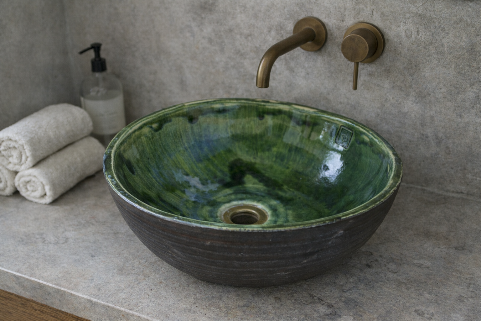 Unikalność: Każdy egzemplarz to ręcznie wykonane dzieło sztuki. Nieregularności formy, różnice w szkliwie i drobne detale czynią każdą umywalkę jedyną w swoim rodzaju.
