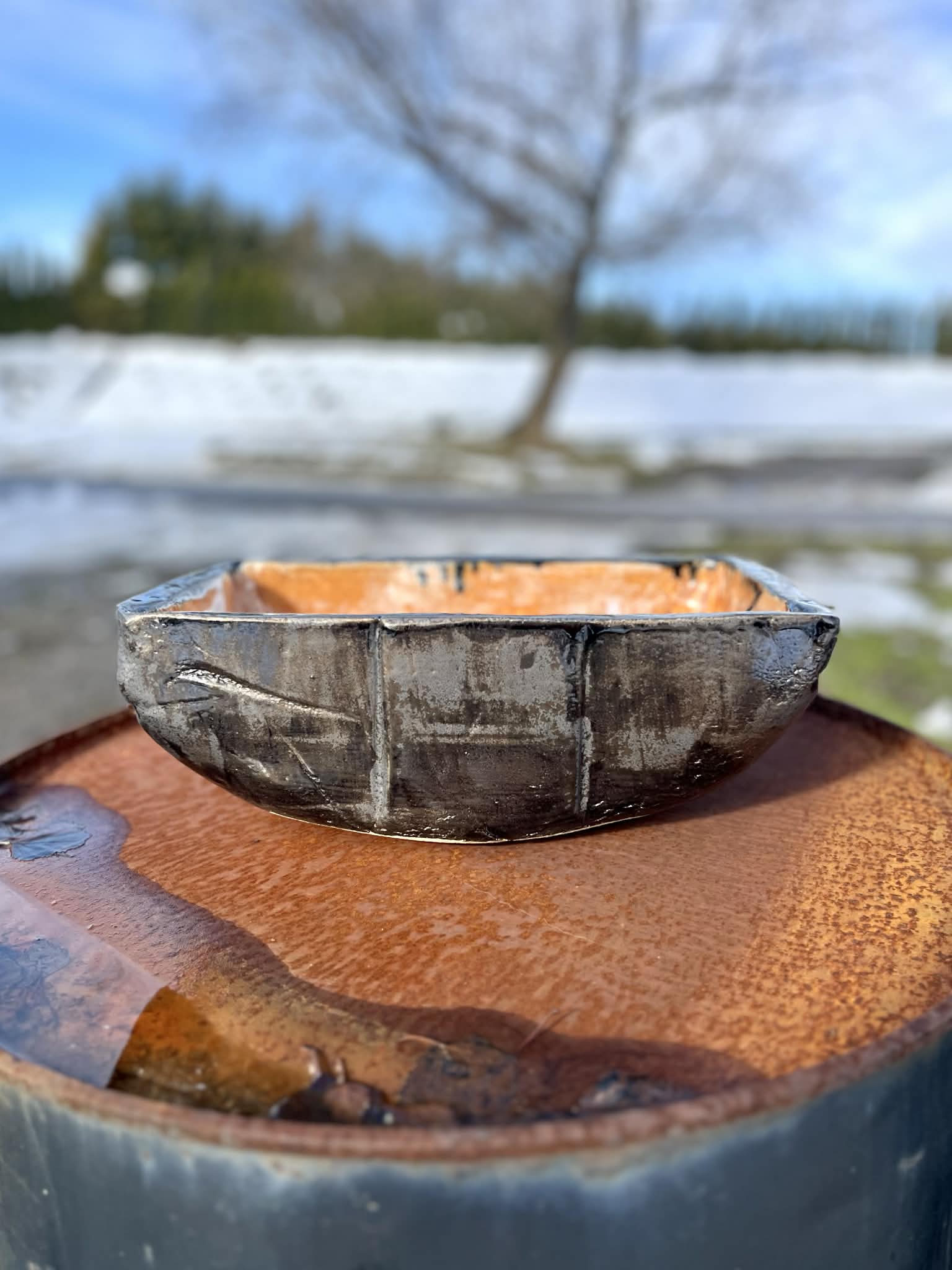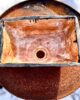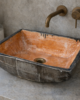 Umywalka ma prostokątną formę, a jej wnętrze pokryte jest szkliwem w barwie bursztynu, przypominającym naturalną strukturę tej wyjątkowej żywicy. Zewnętrzna część zachowuje surowy, rzemieślniczy charakter, co czyni ją idealną do wnętrz nowoczesnych, rustykalnych oraz boho.