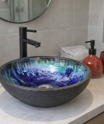 Co czyni naszą Umywalkę Las wyjątkową? To nie tylko jej piękno zewnętrzne, ale również starannie wykończona wewnętrzna strona, na którą nakładane są aż 3 warstwy szkliwa. Te szkliwa rozwijają się i przenikają wzajemnie podczas procesu wypalania, tworząc efekt niezwykłej głębi i tekstury. Każda umywalka jest unikatowa – żadna nie jest identyczna z inną, dzięki czemu staje się ona niepowtarzalnym elementem Twojej łazienki.